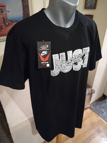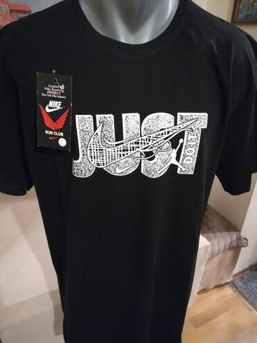 Nova muska pamucna markirana majica Nike u velikim brojevima. Turska. Vrlo dobra muska majica za muskarce svih uzrasta. Uradjena od prijatnog i kvalitetnog pamuka. Vrlo lepog dezena, lako se kombinuje sa bilo kojim komadom garderobe. Super ide na farmerke, trenerke, bermude i pantalone. Odlicna muska majica za sve prilike, idealna za posebne prilike i svecanosti. Muska pamucna majica Nike je nova sa etiketom.