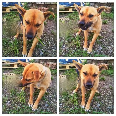 Poklanjam psa Mešanac srednje veličine – ženka kratkodlake riđe dlake sa crnom njuškom i belim šapama. Uši uspravne, rep srednje dužine. Vrlo druželjubiv i privržen, voli maženje i društvo ljudi. Aktivan i radoznao, odlično za porodice i osobe koje vole šetnje i igru na travi. Naviknut na povodac i ogrlicu; lepo prati osobu u šetnji.