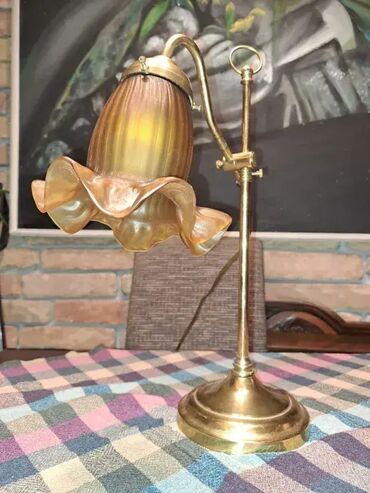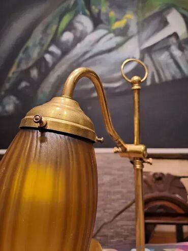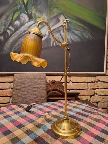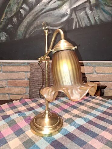 Pokupiti na licu mestaMesingana lampa sa staklenom lalom. Ispravna. Visina promenljiva od 43cm do 60cm.