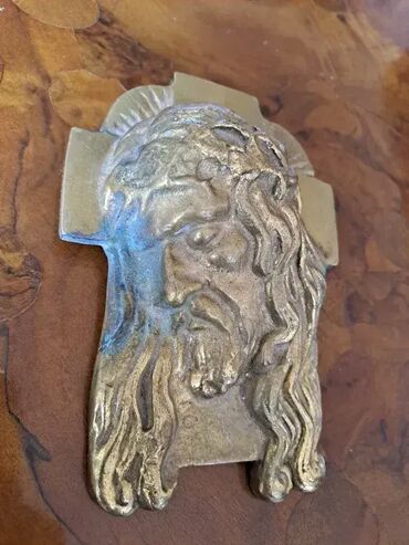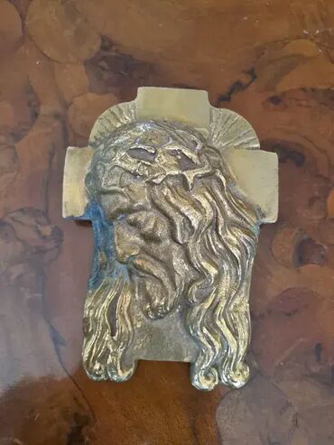 Pokupiti na licu mestaMesingana maska Isusa. Dimenzija 15x11cm.