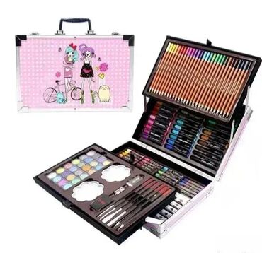 Praktičan set za crtanje i bojenje u rasklopivom metalnom koferu, koji omogućava da sav potreban pribor bude na jednom mestu. 🎨✨