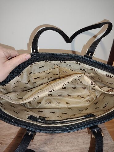 - Materijal: izdržljiva coated platna/veštačka koža sa MK monogram printom; unutrašnjost od tekstila sa MK logom