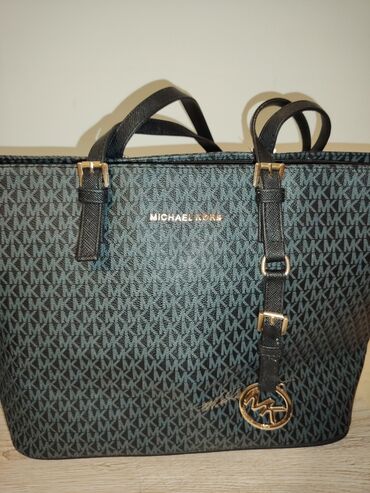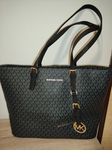 - Boja: tamna podloga sa sivo-crnim MK šarom; zlatni metalni detalji