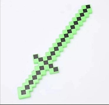 Veliki dečiji mač izrađen po motivima jedne od najpopularnijih video igara – Minecraft 🟩. Dužina mača je 60 cm, a mač ima muzičke efekte 🎵 i svetleće elemente 💡. Napravljen je od plastike i predstavlja odličan poklon za male gejmere 🎁.