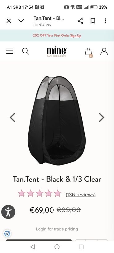Profesionalna sklopiva kabina/šator za spray tan. Crna spoljašnjost sa gornjom prozirnom 1/3 zonom omogućava dodatno prirodno svetlo i bolju vidljivost tokom nanošenja. Dizajn sa širokim ulazom, visok profil za udobno stajanje i integrisano dno koje sakuplja višak spreja i štiti podlogu.