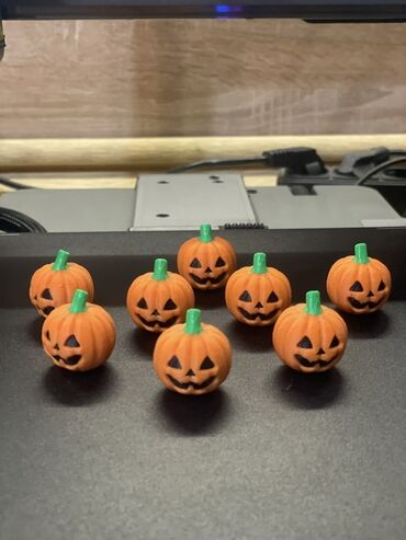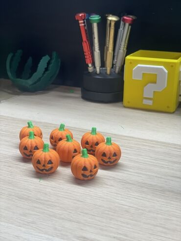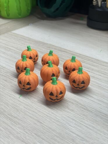 - Set sitnih dekorativnih “jack-o’-lantern” bundeva sa izrezbarenim osmesima i trouglastim očima