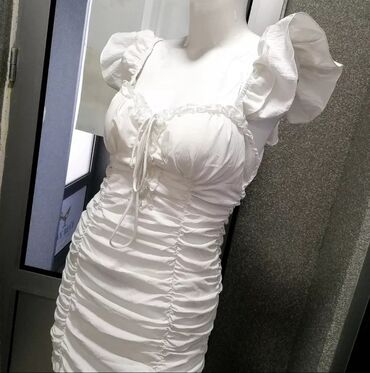 Bela, pripijena haljina sa karnerima i puf rukavima. Haljina ima vezivanje na grudima i karner oko dekoltea. Idealna je za svečane prilike i izlaske Jednom obučena, bukvalno nova