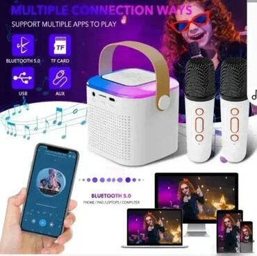 Kompaktan i prenosiv mini karaoke zvučnik sa ugrađenim mikrofonom. Idealan za decu, kućne žurke ili poklon. Jednostavan za upotrebu i lagan za nošenje. Povezivanje putem Bluetooth-a omogućava puštanje muzike direktno sa telefona.