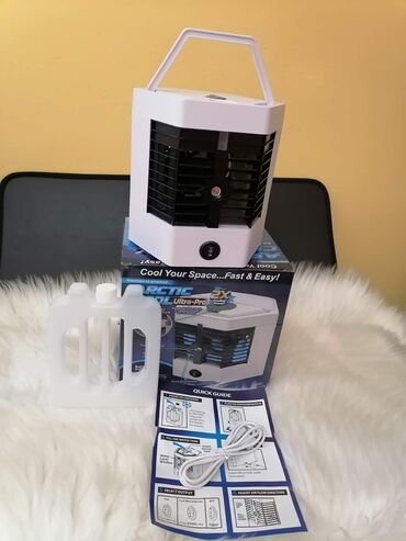 Rashladite se bilo kad i bilo gde. Ovaj inovativni klima-uredjaj koji se napaja putem USB kablića, osvežiće i rashladiće Vašu sobu, vikendicu, kamp kućicu. . . Razlika od ostalih portabl klima na tržištu je što ovaj proizvod ne radi samo na dopunu vode, već ima i dva rezervoara koje držite u zamrzivaču, pa ih tako zamrznute stavljate u uredjaj. Dobijate ih dva komada u pakovanju, tako da ne morate razmišljati o medjuperiodu bez hladjenja. Samo zamenite rezervoar i uživanje se nastavlja. Ovaj uredjaj osvežava i oplemenjuje vazduh, tako da će sve odisati svežinom. U pakovanju dobijate i uputstvo za laku i jednostavnu upotrebu, objašnjeno korak po korak, sliku po sliku.
