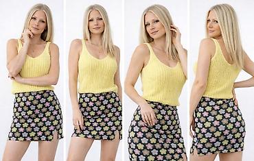 Napomena: Prikazan je samo modni komad – mini suknja sa cvetnim motivom i bočnim prorezima.