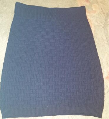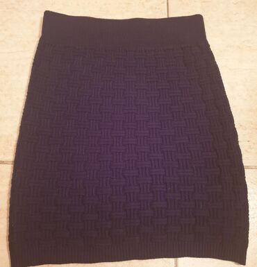 S (EU 36)Mini trikotazna suknja, materijal kao dzemper, ima dosta elastina, bas se puno rasteze i prati liniju tela. Kao riblja kost rad, boja teget. S velicina ali moze i xs i slabiji m. Nova !