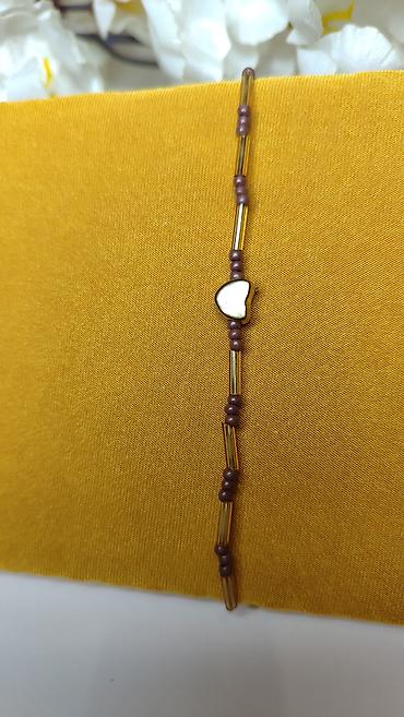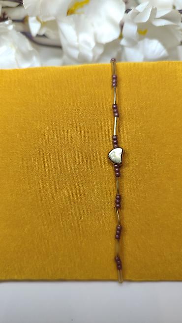 Minimalistička narukvica sa perlicama i centralnim privjeskom u obliku srca.