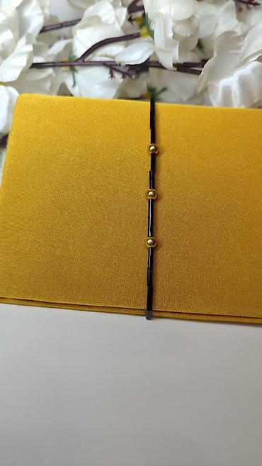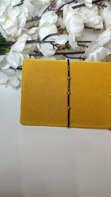 - Dekorativni akcenti: tri zlatne okrugle perle ravnomerno raspoređene duž linije