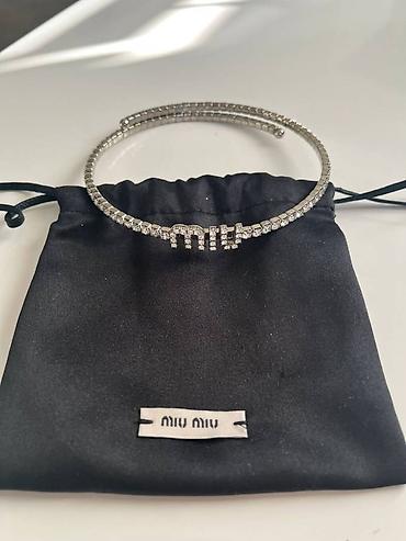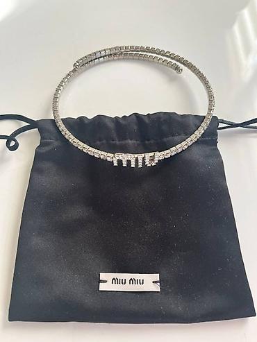 - Centralni detalj: Miu Miu logo ukrašen kristalima