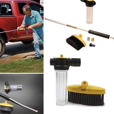 • Set sadrzi: mlaznicu za baštensko crevo, četke za ciscenje, rezervoar za sredstvo za ciscenje,2mlaznice (da stvore pritisak razlicitih radijusa)