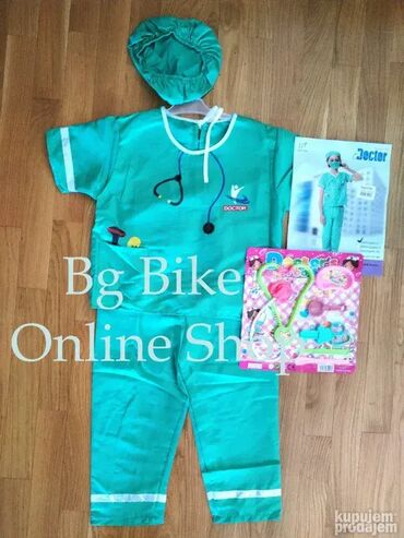 MODEL BROJ 4 Kostim za doktora , doktorku - univerzalan za decake i devojcice ** _Majca + pantalone + kapica + igračke - poklon maska za lice (dok imamo na stanju)_** Za uzrast od 2 do 4 godine: mozda pre za 3 do 5 - izmerite pa proverite - duzina pantalona je 68cm, obim struka od 44 do 66cm lastiš rastehgljivo-Za uzrast 5 do 7- uskoro mere pitajte Za uzrast 8 do 10 - uskoro mere pitajte **POGLEDAJTE OSTALE NASE OGLASE****> > > > > > > > > > > > > > > > > > > > > > > > > > > > > > > > > > > > > > > > > > > > > > > > > > > > > **Trudimo se da odgovorimo i posaljemo artikal u kratkom roku. Pre slanja cemo obavezno jos jednom potvrditi detalje. **Robu saljemo Post Expressom.****Postarinu placa kupac prema cenovniku koji mozete videti na njihovom sajtu.****Robu mozete preuzeti i licno na Novom Beogradu uz obavezan prethodni dogovor.** Povracaj i reklamacije na robu u skladu sa Zakonom o zastiti potrosaca. BG BIKE ONLINE SHOP BeogradMaticni broj: 65560429PIB: