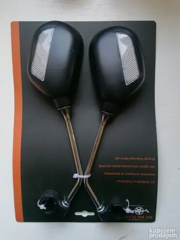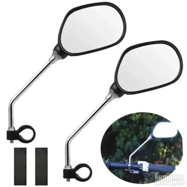 Model broj 7 - NOVO - cena je za oba tj za par, dva komadaVeliki retrovizori odnosno ogledala za bicikle ili motore -ogledalo Dimenzije samog ogledala su otprilike 9,5cm x 6,5cm Ceo retrovizor 11x7,5cmDužina drške oko 16cm za prečnik cevi 19mm-25mm Ogledalce ima zaštirnu foliju preko ogledala koju morate da skinete! ! ! ! ! Odličan retrovizor koji se lako montira i čvrsto stoji. Pozadi imaju mačije oči.