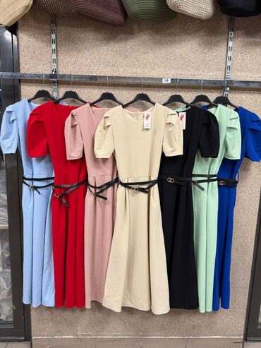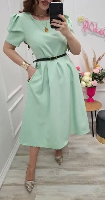 ✅Elegantna ženska haljina do kolena sa kratkim rukavima i pojasom u tonu. A-kroja sa laganim širenjem od struka nadole, naglašava siluetu i pruža komfor pri kretanju. Okrugli izrez, skriveni zadnji...