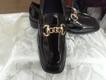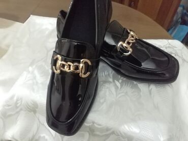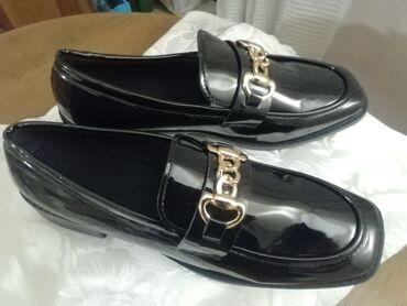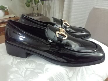 Crne ženske mokasine – lakovana koža, klasičan penny dizajn. - Brend/oznaka: Comfort (natpis na ulošku) - Veličina: 39 (otisnuto sa strane) - Materijal gornjišta: sjajni lak (lakovana završna...1 600 RSD