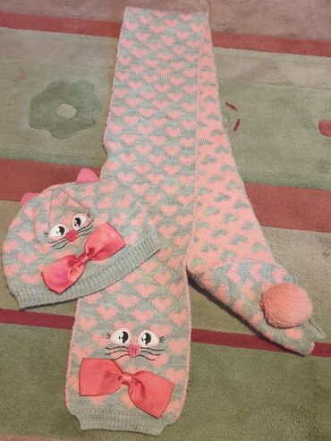 Monsoon accessorize kapa i šal za devojcice oko 4-6 godina. Presladak komplet. Na jednom kraju šala pom-pom loptica..