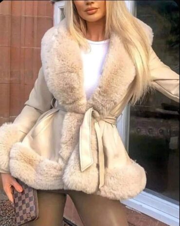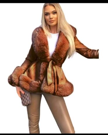 Naslov: Uni veličina — 9600 din Opis: Elegantna ženska jakna u smeđoj boji sa bogatim krznom u kontrastnoj zlatno-bež nijansi. Model sa širokim reverima od krzna, krznenim manžetnama i krznenim ru...