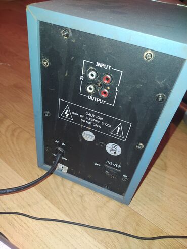 - Ulazi/izlazi na poleđini: stereo RCA (Input L/R) i RCA izlazi za satelite (Output L/R)
