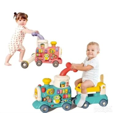 Multifunkcionalni 5-u-1 Baby Walker Train – hodalica i igračka vozić - 5 načina igre: guraj kao hodalicu, guralica sa sedištem (ride-on), sedenje i igra na mestu, povlačenje vagona, interaktivna t...
