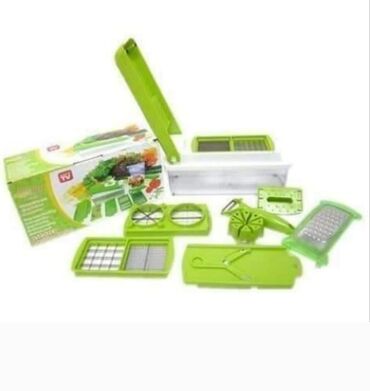 Nicer Dicer Plus noževi, 5 različitih, napravljeni su od izuzetno oštrog i kvalitetnog nerđajućeg čelika. Rukovanje je veoma lako, samo pritisnete poklopac, hrana prolazi kroz sečiva i zadržava se u skladišnom prostoru. Svaki nož Vam omogućava da sečete na delove od 4 ili 8, kocke hrane u 3 različite veličine i još mnogo toga. Odličan je za sve vrste voća i povrća, a nakon sečenja kutiju u koju se skladišti iseckana hrana možete da zatvorite specijalnim plastičnim poklopcem, koji je uključen u ponudu, i na taj način čuvate svežinu Vaše omiljene hrane. Komplet sadrži: 1 bazu za sečenje, 1 gornji deo baze sa funkcijom za cišćenje, 1 providnu posudu za skladištenje od 1.500 ml, 1 poklopac za održavanje svežine hrane, 4 sečiva za više vrsta sečenja, 1 rende sa zaštitom, 1 poklopac za noževe, 1 profesionalni ljuštač povrća, 1 držač hrane (zaštita tokom sečenja).