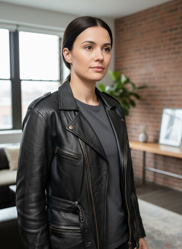 Muška kožna jakna - Materijal: prirodna koža (glatka, sjajnija završnica) - Zatvaranje: centralni metalni rajsferšlus - Džepovi: 2 kosa bočna ušivena džepa + 2 horizontalna grudna
