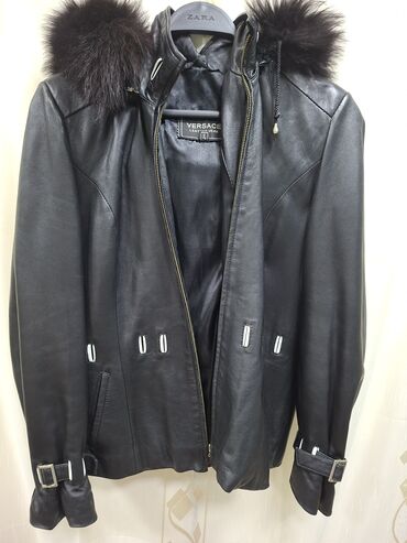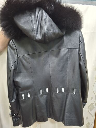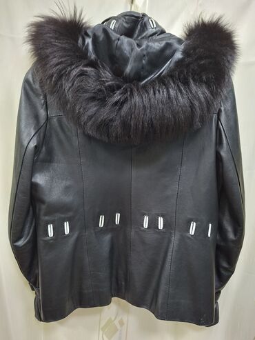 Zenska kožna jakna sa kapuljačom i krznenim obodom
