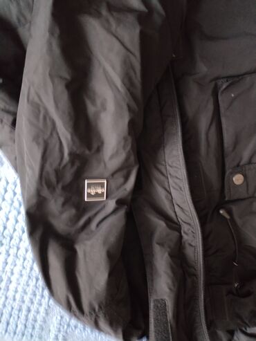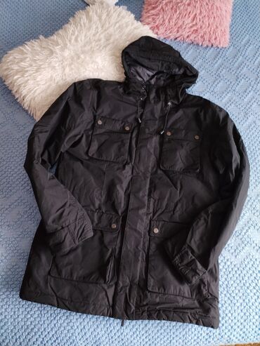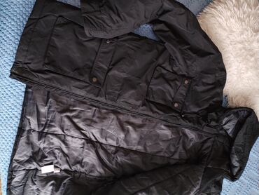 Praktična i topla crna parka za hladnije dane, sa mnogo funkcionalnih džepova i zaštitnom kapuljačom. Veličina: XL.