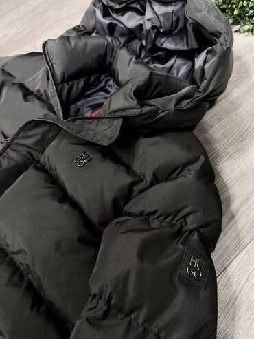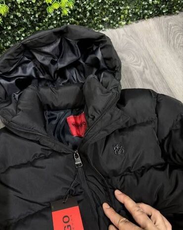 Muška lagana jakna s kapuljačom – crna, sa brendiranim logotipima (A|X Armani Exchange, Diesel, BOSS). - Materijal: glatka spoljašnjost sa mekom postavom iznutra; prijatan i lagan za svakodnevno n...