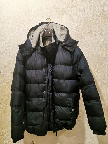 Muška jakna tamnoplave boje sa sivom kapuljačom i visokom kragnom. Jakna je postavljena, sa rebrastim ranflama na rukavima i donjem obodu, što pruža dodatnu toplotu i udobnost. Poseduje dva bočna džepa za ruke, idealna za svakodnevno nošenje u prelaznim periodima.