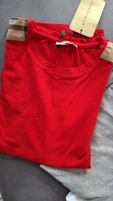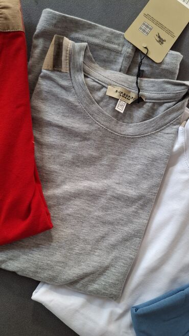 Muške pamučne majice kratkih rukava sa okruglim izrezom. Na ramenima diskretni paneli u klasičnom karo dezenu. Vidljiva brendirana etiketa “BURBERRY LONDON” na unutrašnjem ovratniku i viseća kartica.