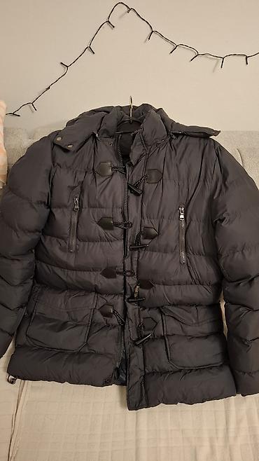 Zimska muška jakna, tamno siva/crna, punjena i dobro postavljena za hladno vreme.