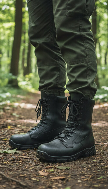 Crne taktičke/vojne čizme visoke do pola listova.