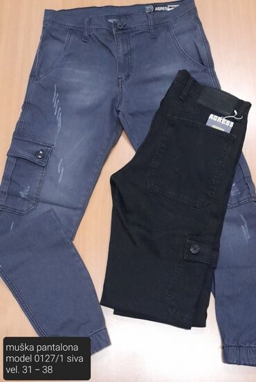 Muške uske farmerke – crne/ugljen s efektom ispranog denima i “distressed” detaljima. - Kroj: slim/skinny, srednji struk, sužene nogavice. - Materijal: elastičan denim (pamuk s dodatkom elastina) ...
