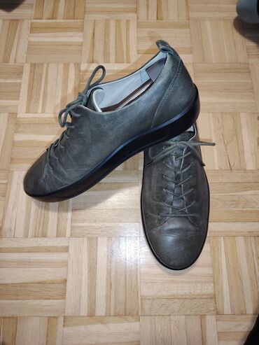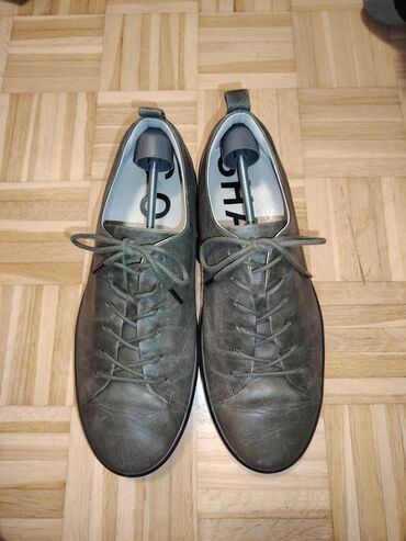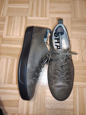 Muške kožne patike/cipele u sivo-maslinastoj boji sa ravnim pertlama i minimalističnim dizajnom. UG 30cm