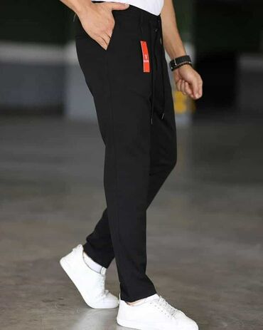 Crne muške trenerke sa elastinom, idealne za svakodnevno nošenje ili sportske aktivnosti. Trenerke su užeg kroja, sa ranflama na nogavicama koje obezbeđuju sigurno prianjanje. Pojas je elastičan i ...