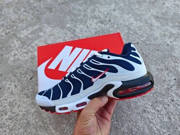 - Boje: tamnoplava gornjište sa belim talasastim panelima, crveni detalji (Swoosh, vazdušne komore i đon), crni midsole
