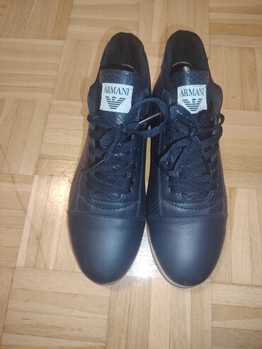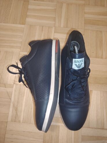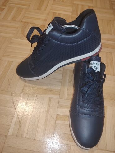 - Unutrašnjost: mekana postava, jezik sa Armani logom i orlom