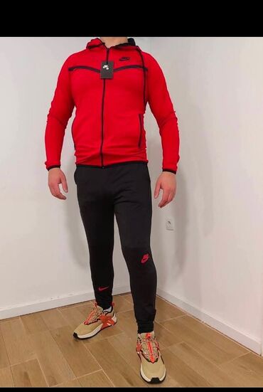 Muški sportski komplet – dukserica s kapuljačom i donji deo trenerke - Model: dvoslojna dukserica sa kapuljačom i kengur džepom + jogger donji deo sa elastičnim strukom i učkurom - Logo: mali Nike...