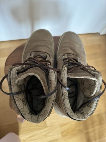 - Materijal: spoljašnjost od brušene kože (semede); postava od platna sa prepoznatljivim GG monogramom