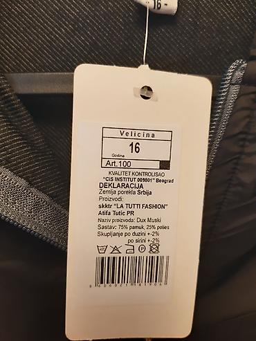 - Održavanje (prema deklaraciji): pranje na 40°C, ne izbeljivati, može hemijsko čišćenje, peglanje na niskoj temperaturi, ne sušiti u mašini