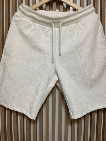 Muški komplet košulja + šorts u beloj boji, sa jacquard/reljefnim monogram uzorkom po celoj površini.
