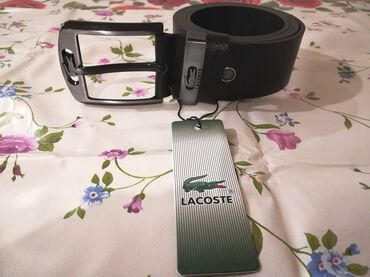 Novi muski kozni markirani kais Lacoste sa etiketom.