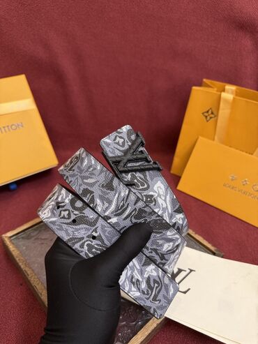 Stilski kaiš koji spaja prepoznatljiv LV monogram sa modernim sivim kamuflažnim motivom i mat crnom kopčom – idealan za smart-casual i večernje kombinacije.