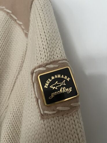 - Brend detalj: metalni/plakirani kvadratni badge “PAUL & SHARK yachting” na levoj nadlaktici