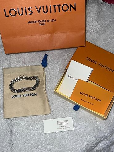 - Louis Vuitton masivnija lančana narukvica u srebrnom tonu. Dolazi sa originalnim narandžastim pakovanjem: brendirana kutija sa fiokom, kesica od tkanine sa vezicom i informativne kartice.