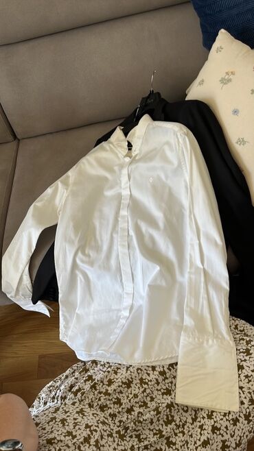- Košulja: bela, dugih rukava, klasična kragna, diskretan vezeni logo na grudima.